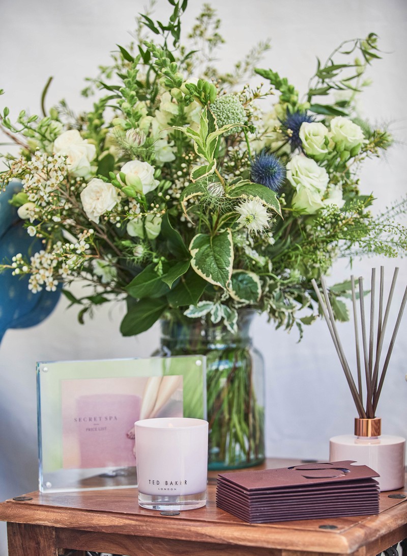 The two new facials and two new massage oils were debuted to guests in a custom-made spa tent filled with with flowers.